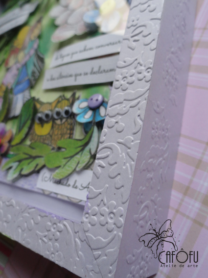 Feito especialmente para colocar nessa moldurinha linda forrada com papel colorplus lilás passado na maquininha de textura.