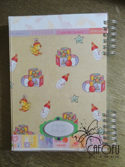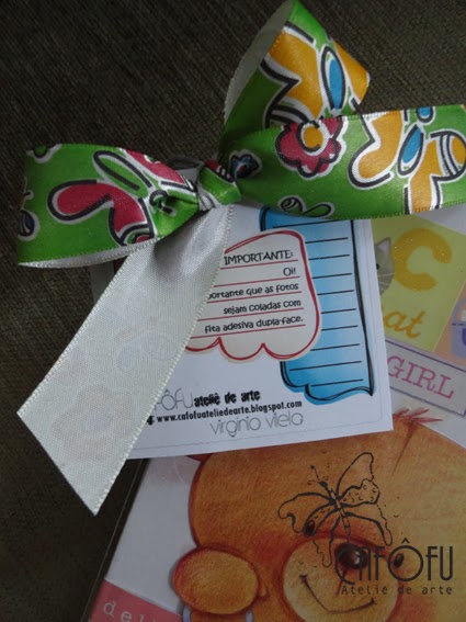 Um álbum com capa decorada e personalizada e com miolo de 50 folhas não personalizado