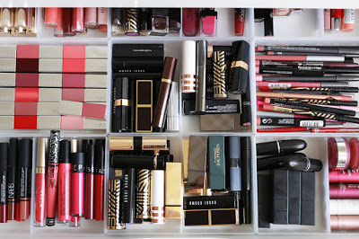 O que tenho: muitos esmaltes e batons, algumas sombras e rimel.