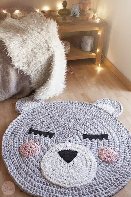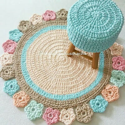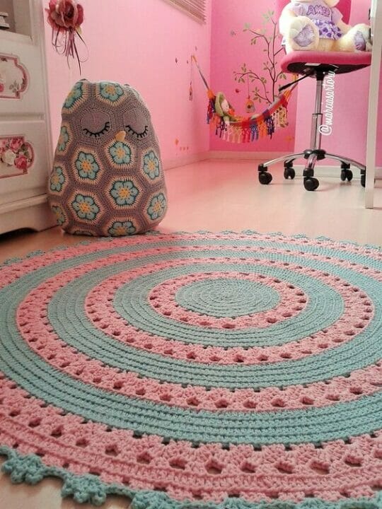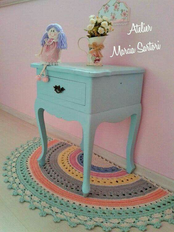 Amei, amei, amei ese tapete em crochet com esses pompons! Clique AQUI.