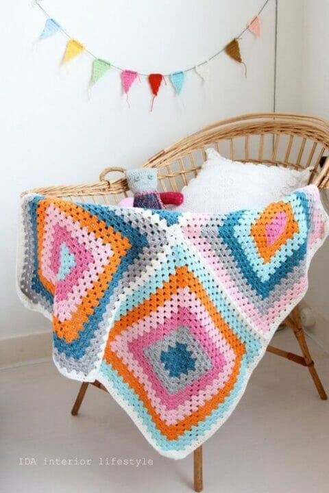 Olhem esse bercinho! Até as bandeirolas decorativas e o bonequinho são feitos em crochet! Clique AQUI.