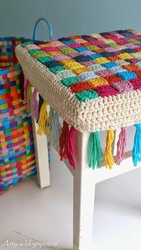 E que linda essa almofada! transformou acadeira simples em uma obra de arte! E, como vocês podem observar, tudo à volta é feito em crochet! Clique AQUI.