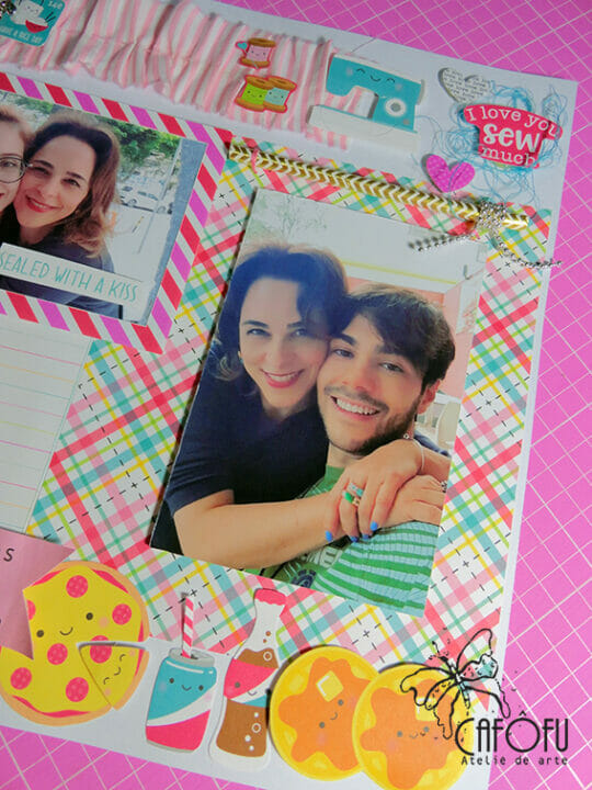 Essas páginas em scrapbooking ficaram tão cheias de vida! Cheias de costurinhas!