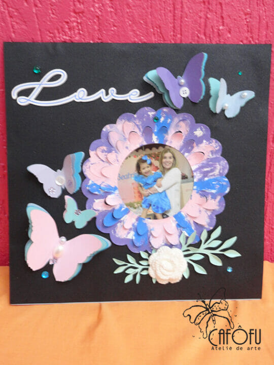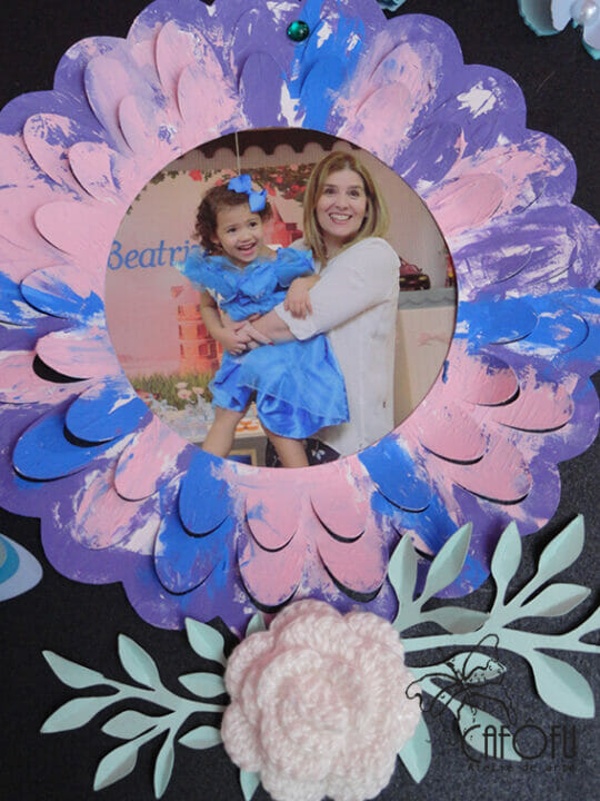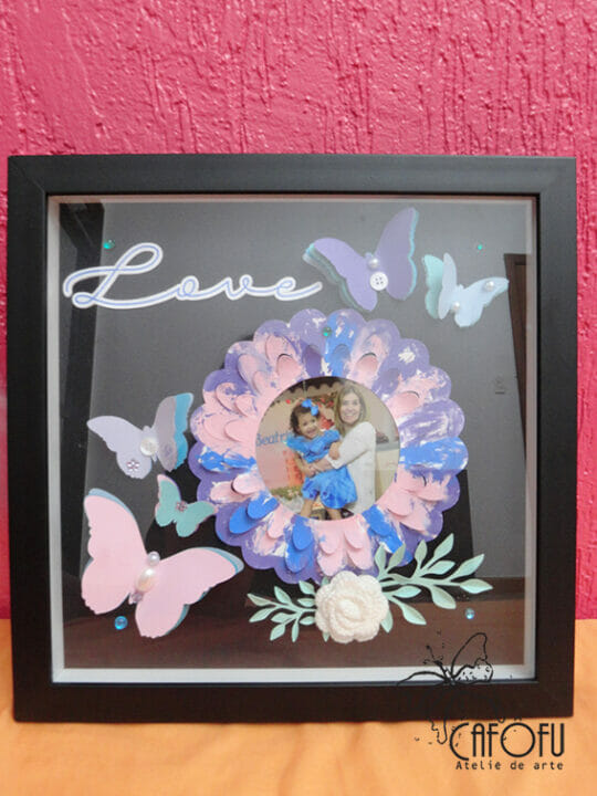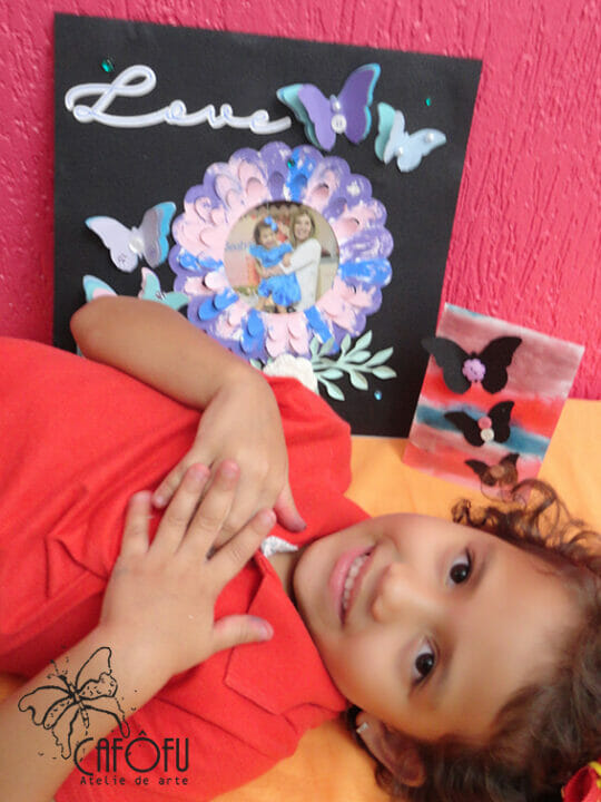 Esse quadro foi feito para presentear uma tia muito querida! Imagina a emoção dela ao fazer e da tia ao receber um presente feito pela sobrinha de cinco anos! 🙂