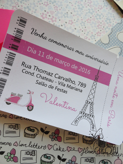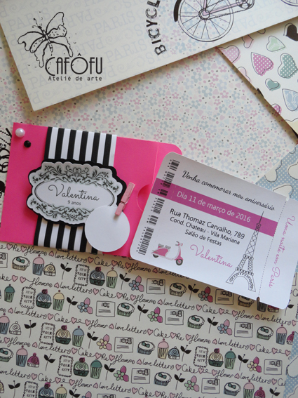 Uma aluna que fez curso comigo há uns 3 anos retornou querendo fazer um convite com tema Paris.