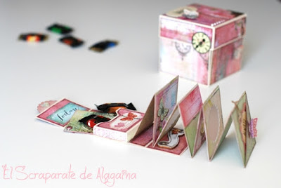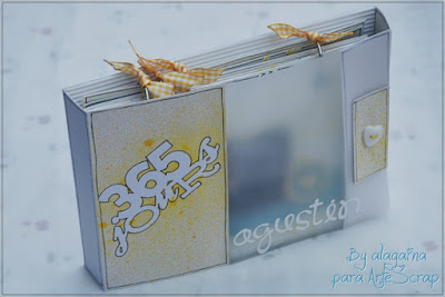 Ela se chama Ana Rosa, mas adotou o nome Alagaina. Vive em Loeches, uma pequena cidade a leste de Madrid. Estudou design de Moda onde aprendeu a combinar cores, texturas. Com o Scrapbooking integrou o outro hobby: fotografia.