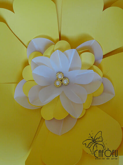 FLOR MODELO UM: Essa é a flor amarela. Esse miolo ficou um charme!