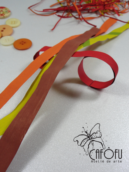 5- Forme montinhos com quatro tirinhas coloridas de cores diversas.