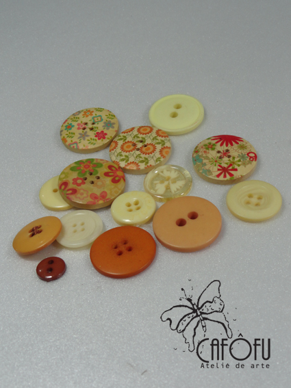 Além da sacola de papel: botões, tintas acrílicas das cores que você gostar, cola quente, tesoura, pincel, durex.