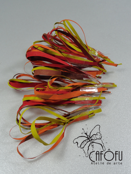 3- Cortar essas tiras pintadas em tirinhas bem fininhas com mais ou menos 2 mm de largura.