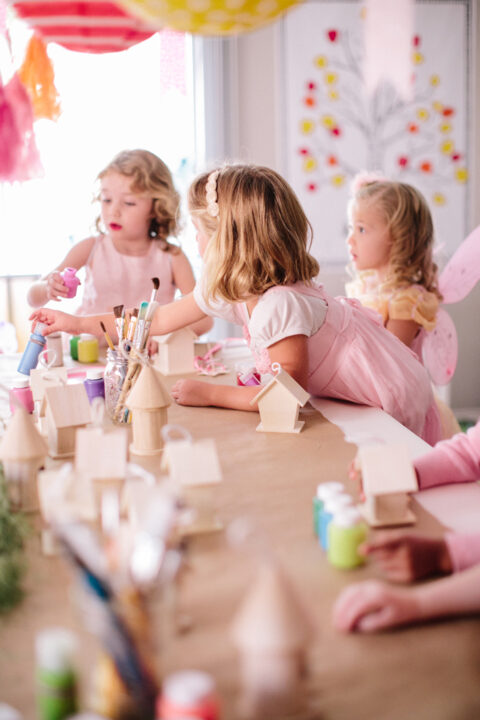 Uma aula de artesanato! Imagina cada menininha levar de lembrancinha uma casinha pintada e totalmente decorada por ela mesma!