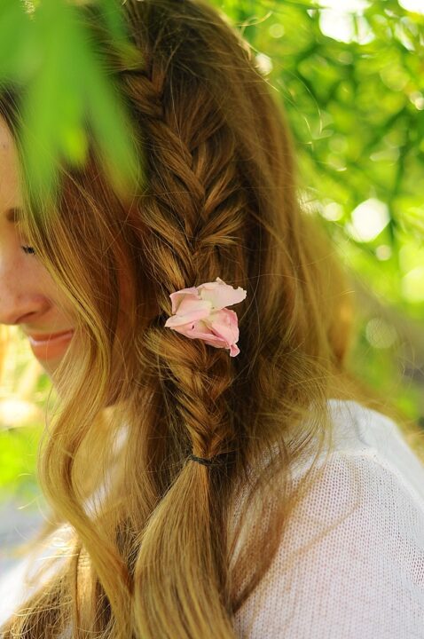 Cabelos com trança e enfeitados floridamente!
