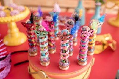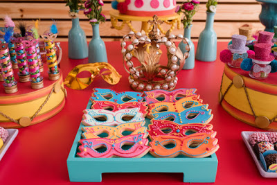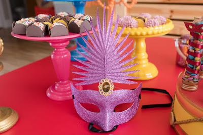 Máscaras em formatos e cores diferentes para decorar a mesa!