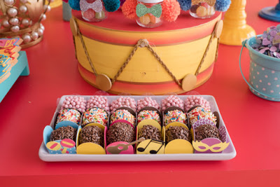 Que fofas essas forminhas! Só as da beiradinhas decoradas com instrumentos e notas musicais, máscaras.