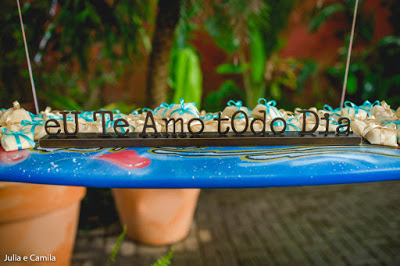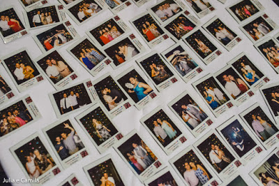 Um varal com fotos do namoro para todos ficarem relembrando os bons tempos.