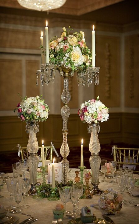 A mesa dos convidados com esses castiçais e taças maravilhosas! Uma verdadeira magia!