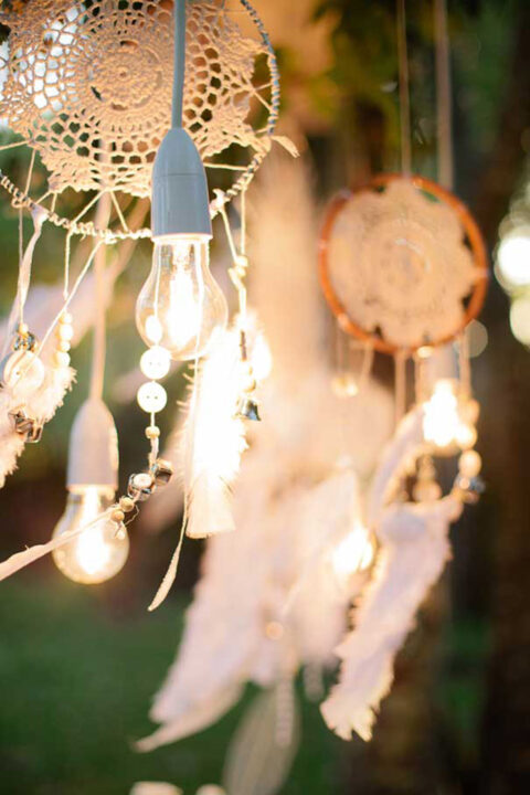 Filtro dos sonhos misturados com lâmpadas… muito lindo! Sonho e luz, esperança!
