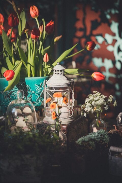 O altar simples assim: a própria árvore lindamente decorada com flores.
