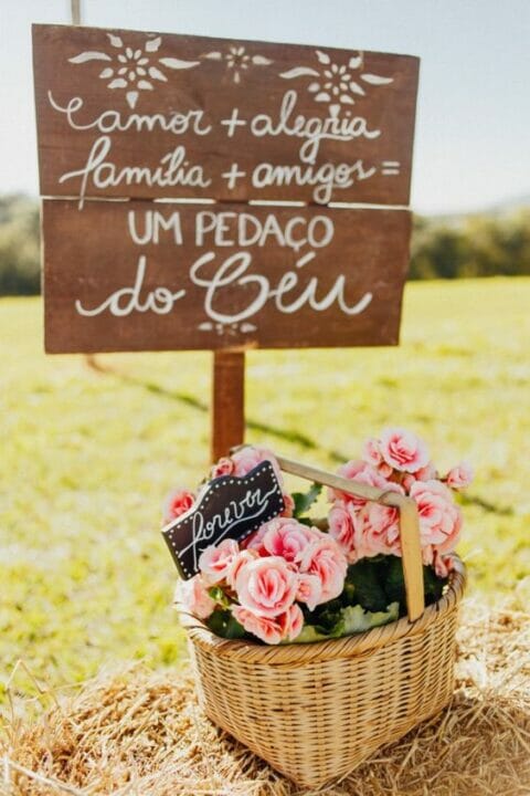 Que fofas essas placas de casamento para dar orientações e passar alguma mensagem! Clique AQUI.