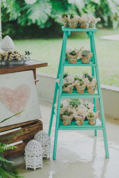Que prateleira mais linda para serem colocados as lembrancinhas – amo vasinhos de lembrancinhas!