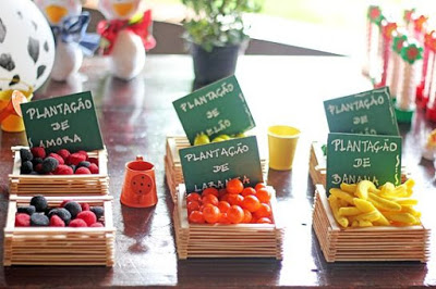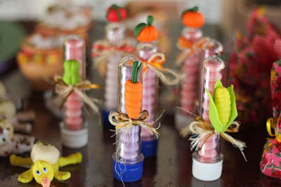 Para decorar os tubetes botõezinhos de legumes, verduras e frutas.