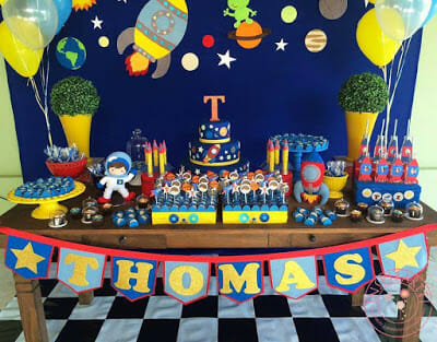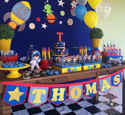 Bandeirolas com o nome do aniversariante astronauta!
