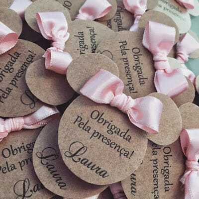 Essa tag para colocar na embalagem da lembrancinha ficou linda demais em craft. Clique AQUI.