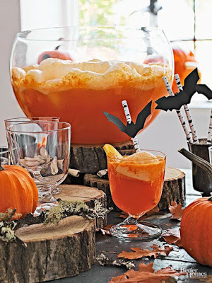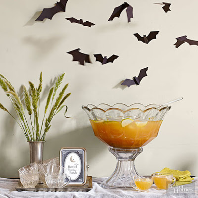 Para enfeitar os drinks, canudinhos com morcegos. Folhas secas simulando um ambiente tenebroso… mas sem causar aflição.
