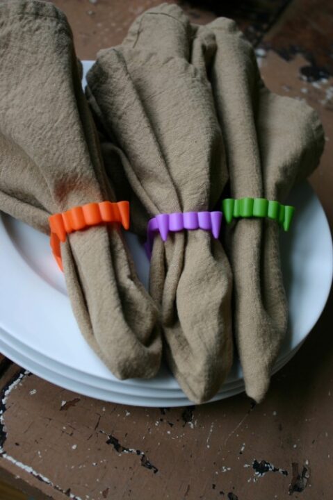 Simples assim: é só pegar as dentaduras que achamos facilmente e colocar o guardanapo por dentro. Clique AQUI.