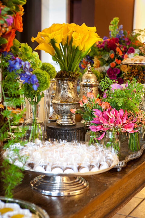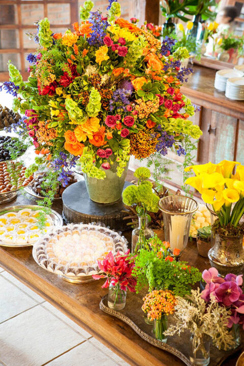 Muitos tipos de flores e de muitas cores! E muita prataria!