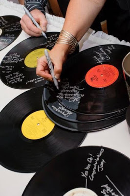 E ao invés desse tradicional álbum de assinaturas, que tal recados em vinil, para a aniversariante pendurar na parede depois? É muito bom recordar bons momentos e lembrar de todas as pessoas especiais que estavam presentes.