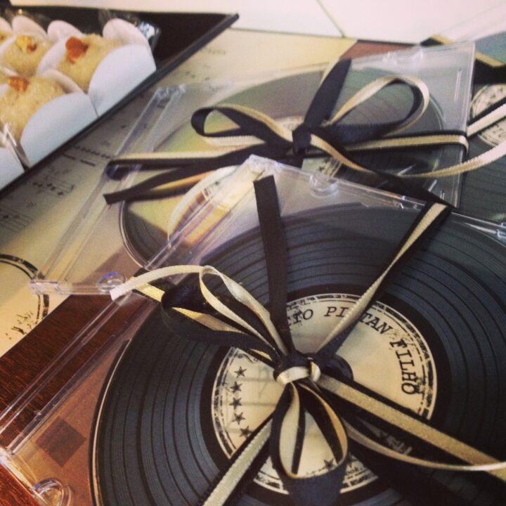 e de lembrancinhas que tal um CD com a seleção musical do aniversariante? Uma super ideia!