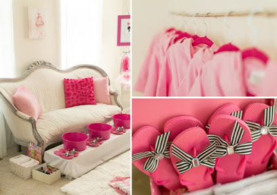 Todas convidadas ganharam também roupões e chinelinhos de banho personalizados!