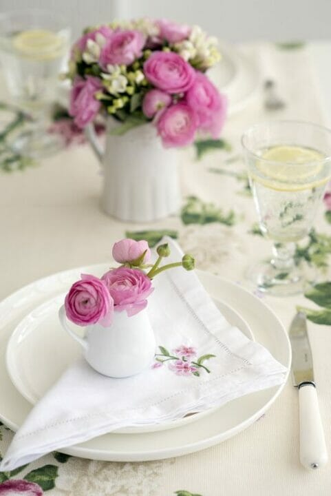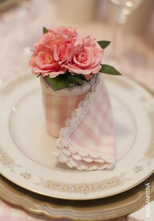 Um vasinho de florzinha bem delicado em cima do prato e do guardanapo! Clique AQUI.