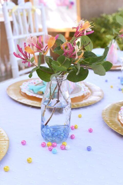 Jarrinho de flor com bijoux grandes espalhadas como centrinho de mesa!!!