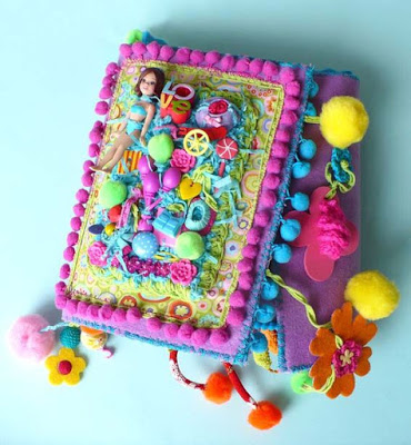 Amei essa encadernação chiquerézima com botõezinhos e penduricalhos. Minha cara! Mas não me arrisco a fazê-lo não… meus dedinhos doem só de pensar em furar esse tanto de papéis! kkk