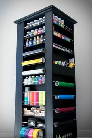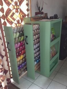 Os meus papéis grandes ficam em um cestão (que era de lixo) na frente do armários que guardo os projetos prontos. ficam bonitinhos, sem amassar, mas adorei esse móvel! Clique AQUI.
