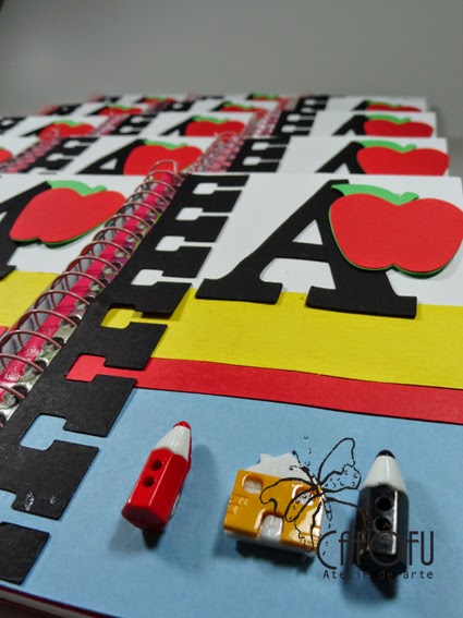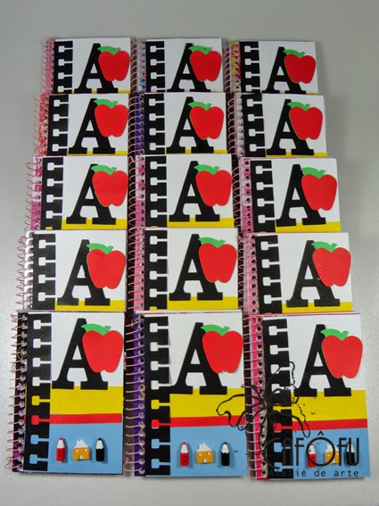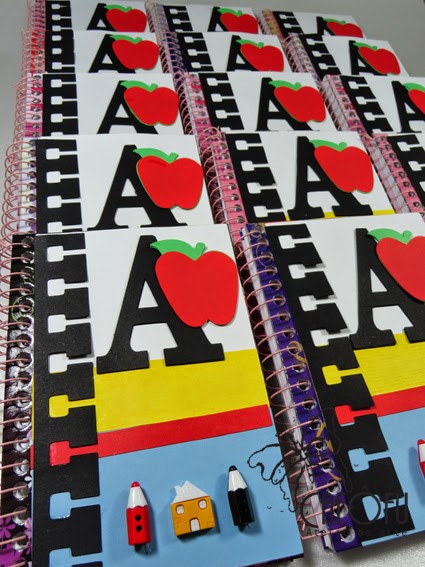 Os bloquinhos personalizados com o tema escola, cheios de detalhes fofos,