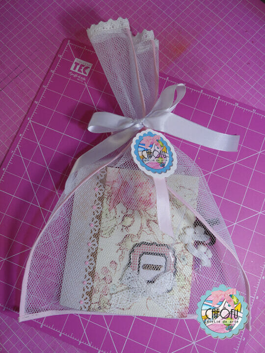 Usei essa embalagem feita pela minha mãe. Sempre confundo tule com filó rsrsrs