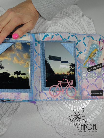 E abaixo fotos no meu mini aberto com as fotos, mais decoração e journaling.