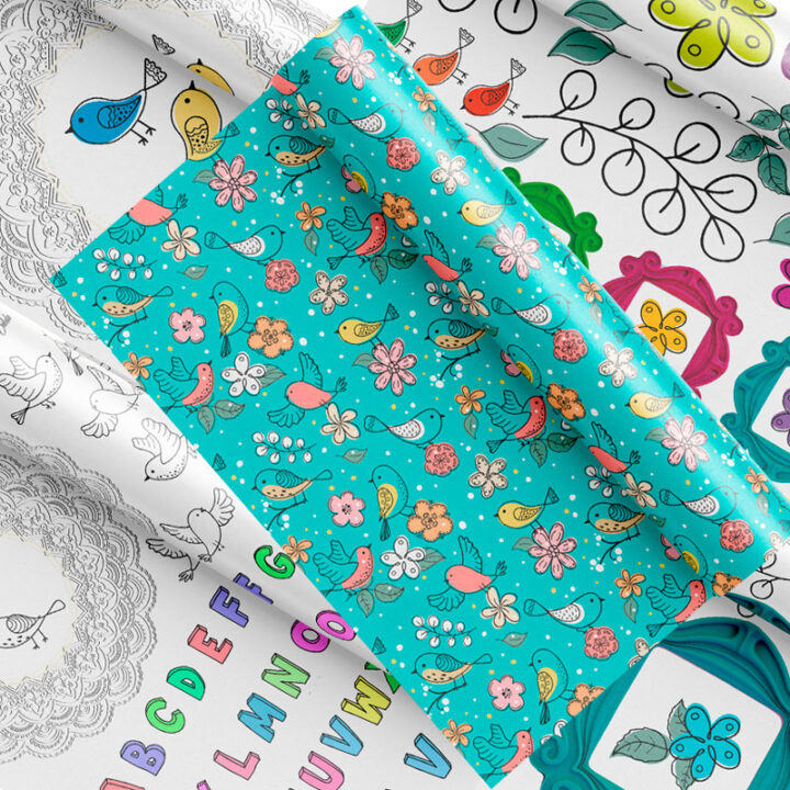 MINI KIT 14 – KIT DIGITAL ALFABETO, PÁSSAROS, MOLDURAS E DOILIE