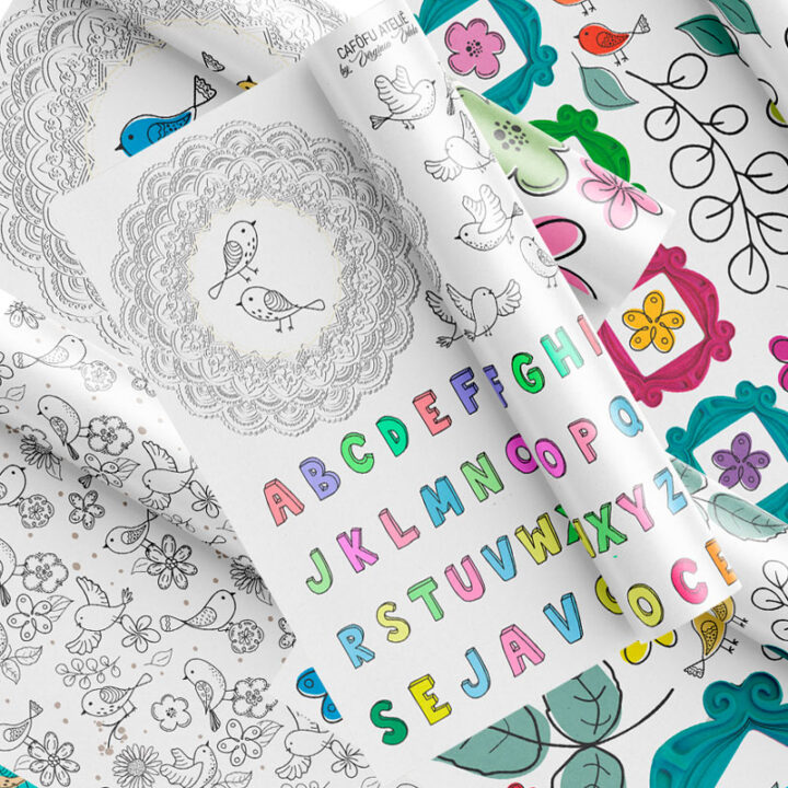 Conteúdo: 4 PRINTABLES A4 em JPEG + 2 FOLHAS DECORADAS A4 em JPEG.