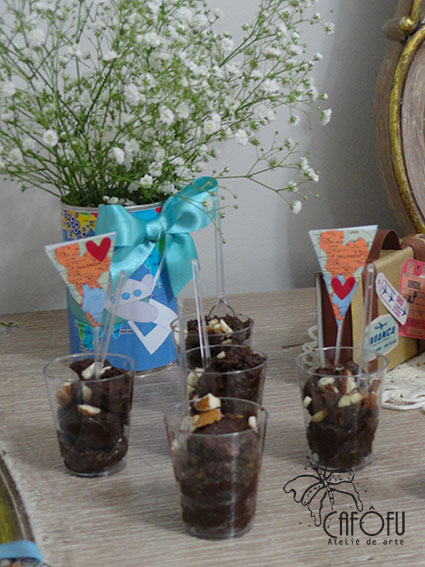 Toppers de mini bandeirolas para os copinhos de brigadeiros.