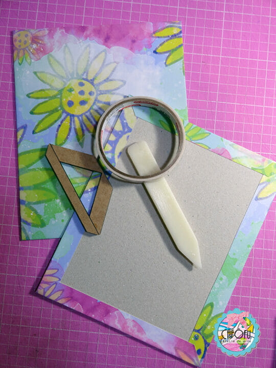 Usei dupla face, fio de cabelo, estilete, régua de metal e dobradeira.