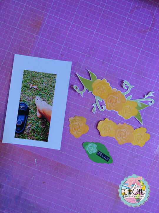 colei holler debaixo da foto para a foto ficar em relevo e por todos os elementos digitais impressos e já recortados.