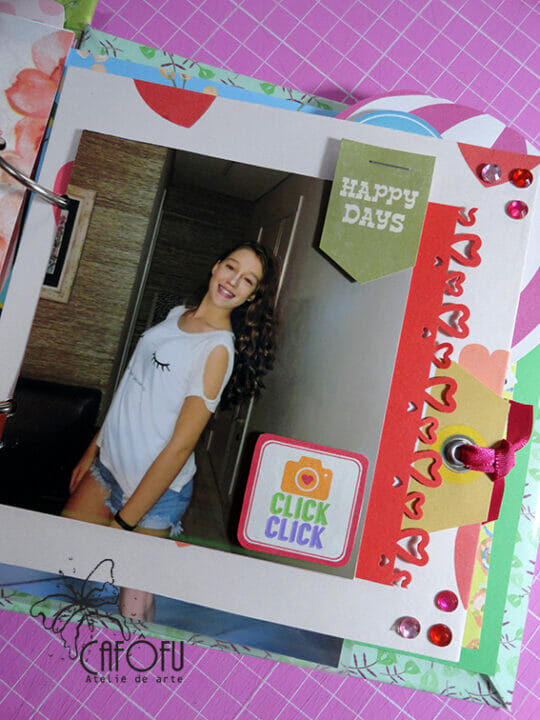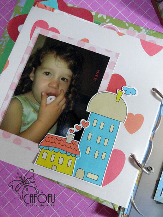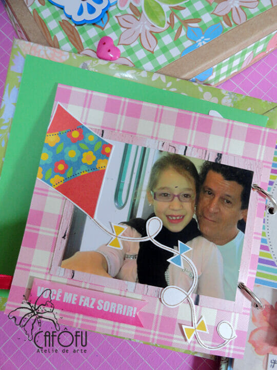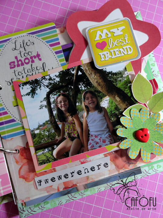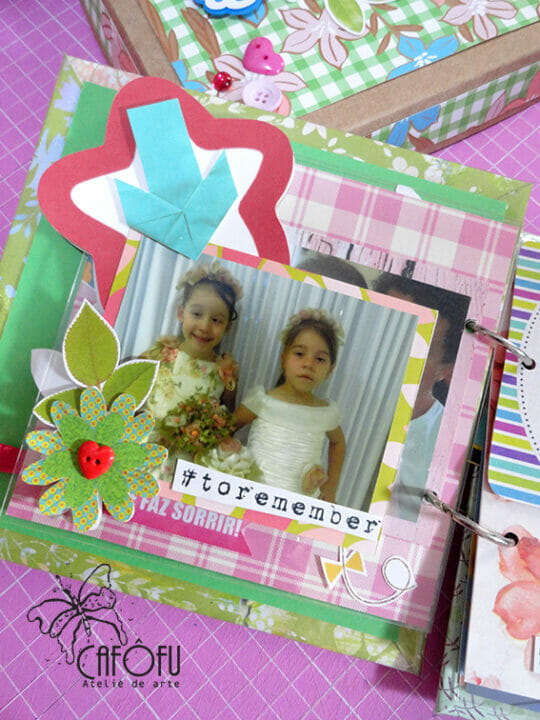 Minha paixão é fazer mini álbum, ainda mais com a história de uma vida 🙂 Ainda mais para irmãs gêmeas filhas de publicitária e músico! Pude me esbanjar nas cores e detalhes! 🙂