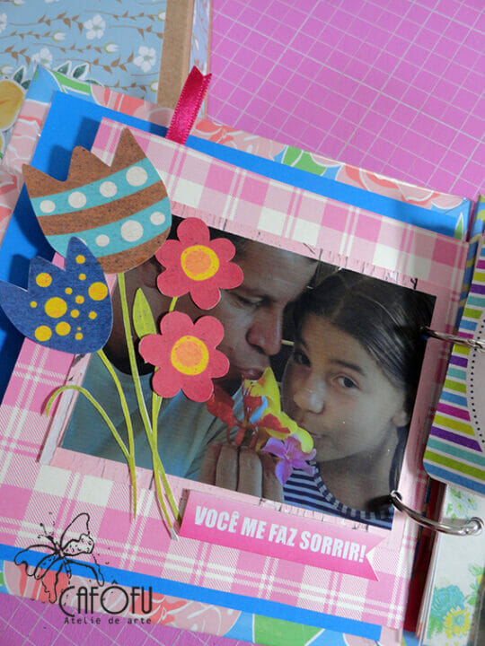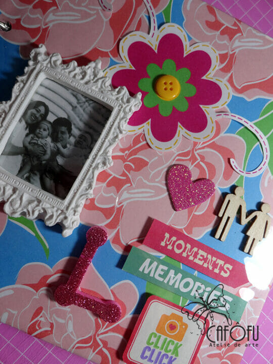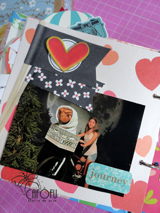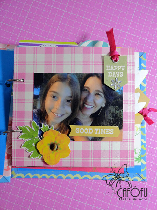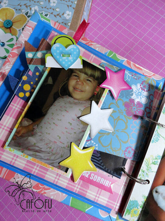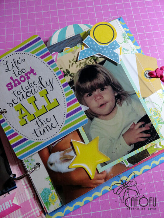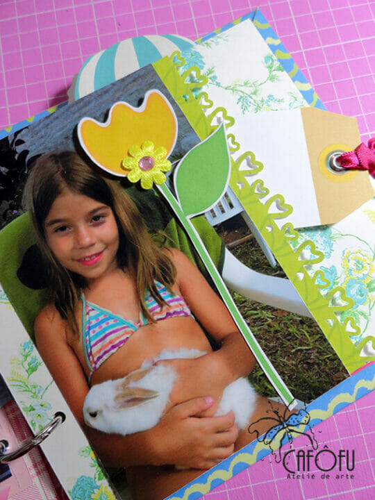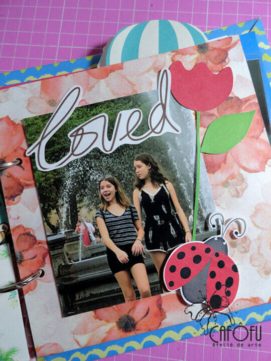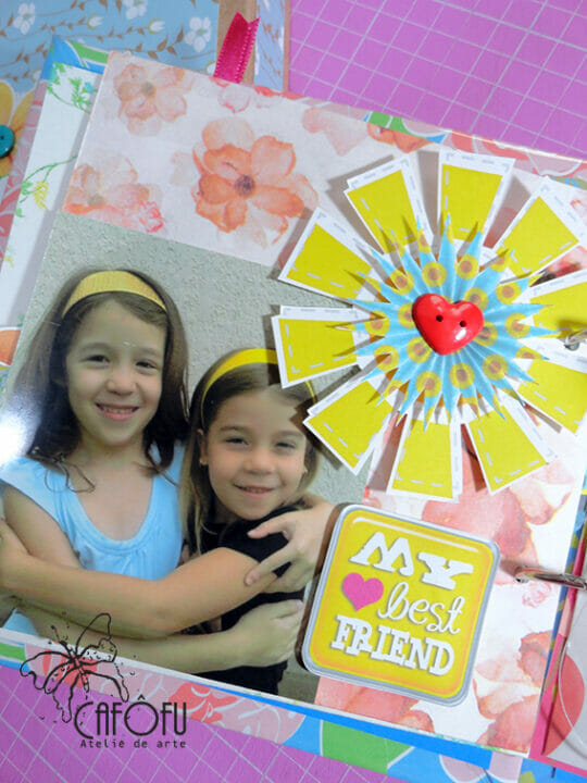 Minha paixão é fazer mini álbum, ainda mais com a história de uma vida 🙂 Ainda mais para irmãs gêmeas filhas de publicitária e músico! Pude me esbanjar nas cores e detalhes! 🙂