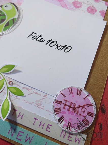 Em cada página usei técnicas simples de scrapbooking de colagens, aplicações plastificadas e sobreposições feitas na página impressa (scrapbooking digital) em papel matte 180 gramas.