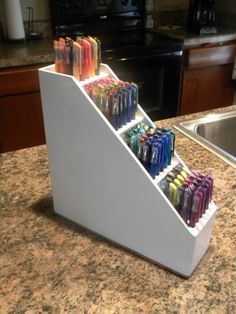 Vale também para o escritório! Pegue seu porta controle remoto que você está enjoado de tanto usar, dá uma reformada nele e o use de porta canetas!