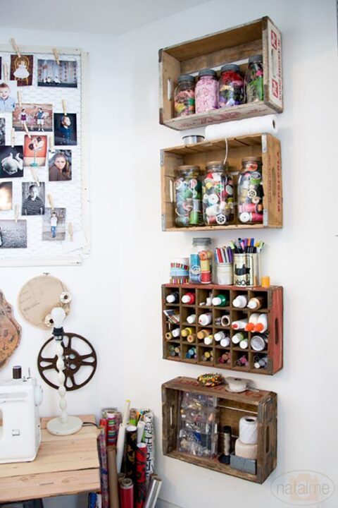 Que tal pegar caixonas com tampas estragadas e pregá-las na parede para servir de nichos?